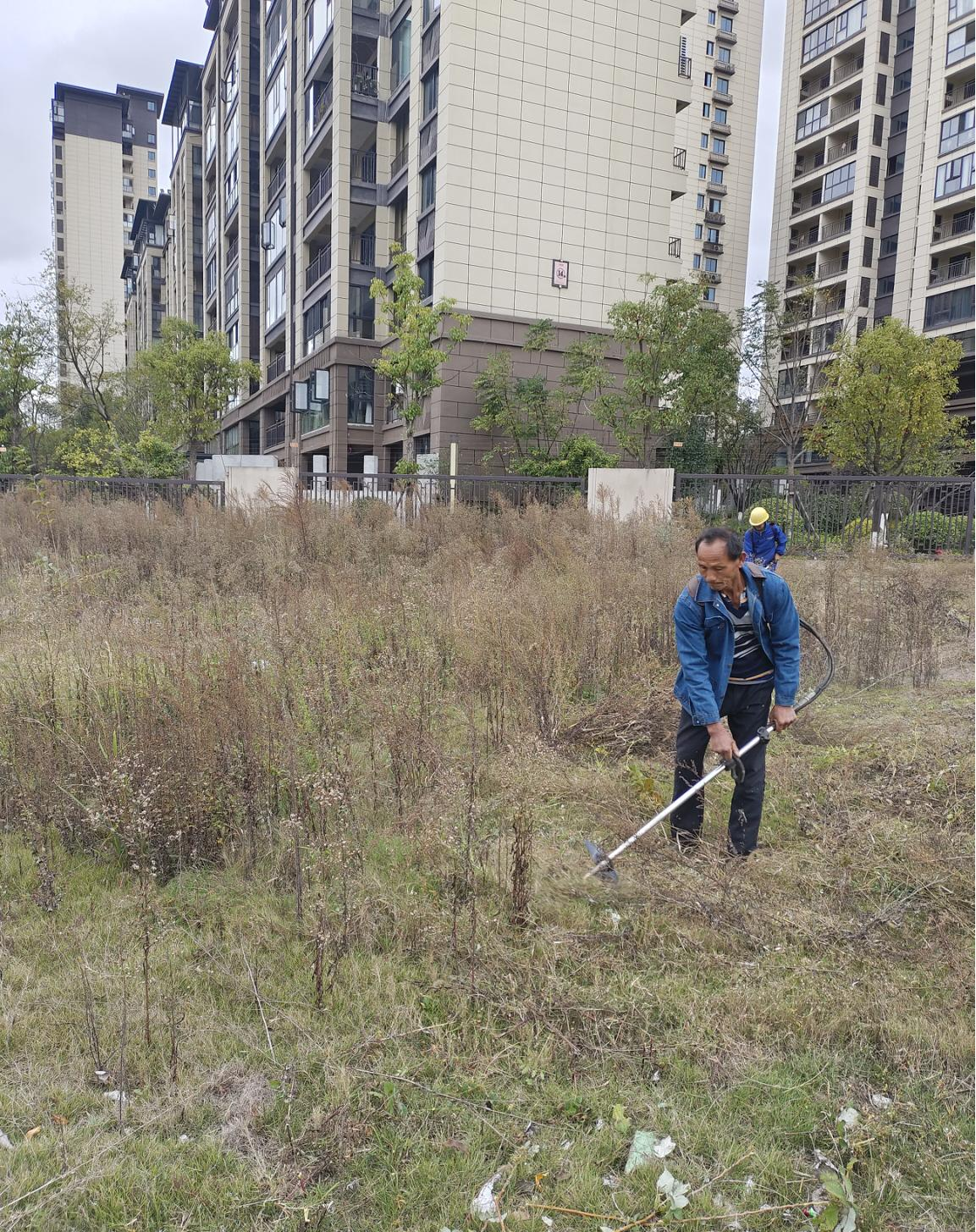 11月27日,在曉華門店約2公里的粟裕公園,物業(yè)人員快速行動(dòng),帶上鐮刀等機(jī)具開始清除遍地雜草。雜草面積較寬且密集重生,為避免受到蛇類攻擊,工作人員不時(shí)提醒現(xiàn)場(chǎng)作業(yè)人員“注意安全”。經(jīng)過(guò)兩天努力,近10畝的荒草基本清除完畢,將在適宜時(shí)節(jié)播撒花種。屆時(shí),粟裕公園將會(huì)變得更加美麗,切實(shí)提升居民幸福感。