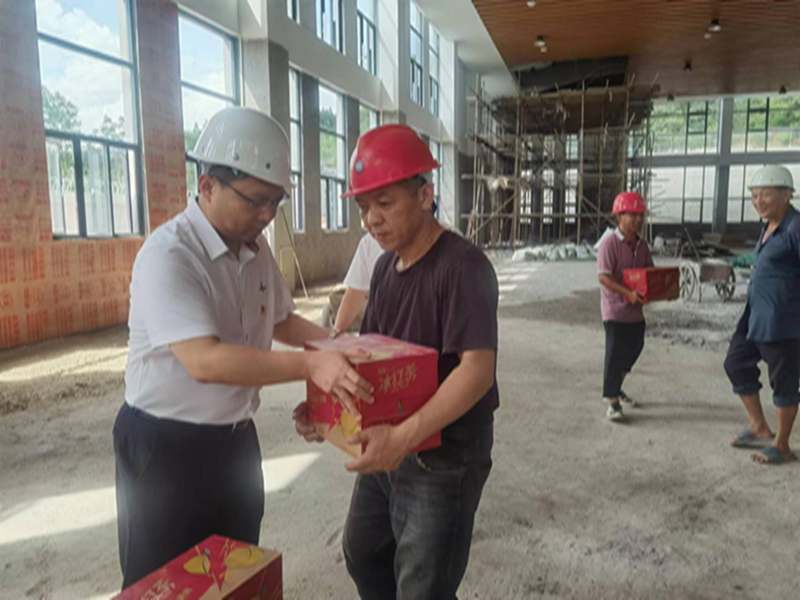 黨委副書(shū)記、總經(jīng)理、支部指導(dǎo)員江中同志為工人送上防暑用品
