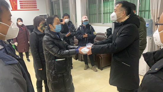 2月2日上午八點(diǎn)半,在公司黨委書(shū)記、董事長(zhǎng)熊智勇的帶領(lǐng)下,公司突擊隊(duì)分組前往四個(gè)現(xiàn)場(chǎng),施援社區(qū)和安置區(qū),開(kāi)展疫情防控相關(guān)工作。在禾塘安置區(qū)和西興社區(qū),工作人員送去了口罩等物資,手把手教一些年紀(jì)大的安置戶如何正確佩戴口罩、清洗雙手等知識(shí),進(jìn)一步做好宣傳防護(hù)工作。