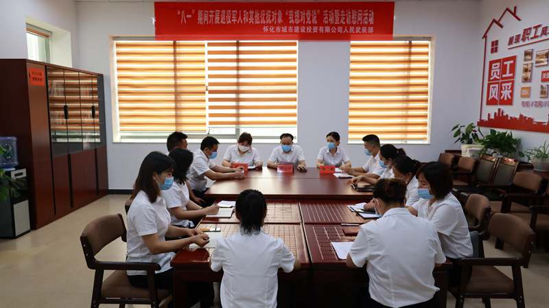 今年是中國共產(chǎn)黨建黨100周年,中國人民解放軍建軍94周年,懷化市城市建設(shè)投資有限公司高舉習(xí)近平新時(shí)代中國特色社會(huì)主義思想偉大旗幟,深入貫徹黨中央、國務(wù)院、中央軍委和習(xí)近平總書記關(guān)于加強(qiáng)軍政軍民團(tuán)結(jié)的指示精神,扎實(shí)做好“八一”期間擁軍優(yōu)屬工作。結(jié)合黨史學(xué)習(xí)教育,8月10日,我公司武裝部開展走訪慰問退役軍人和其他優(yōu)撫對(duì)象暨“我想對(duì)黨說”主題活動(dòng),黨委委員、監(jiān)事會(huì)主席劉運(yùn)祥主持活動(dòng)。