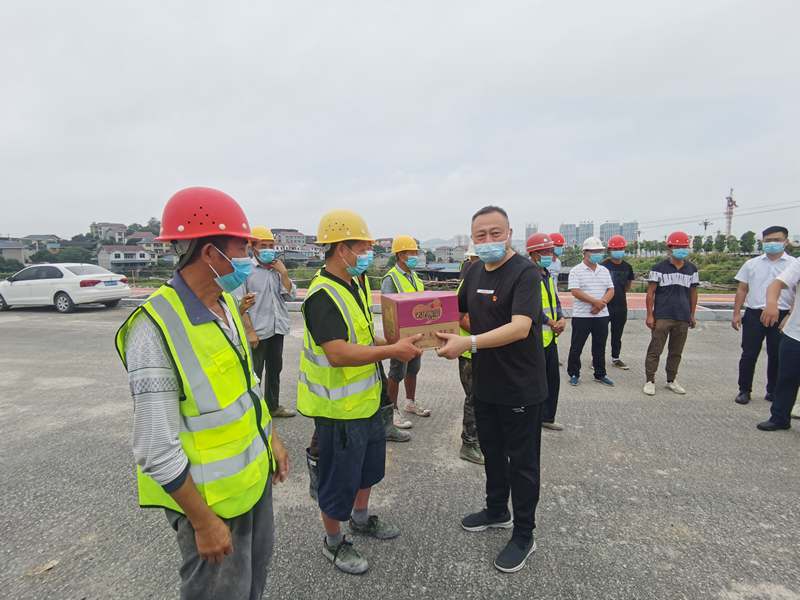8月28日上午,懷化市城市建設(shè)投資有限公司領(lǐng)導(dǎo)班子成員帶領(lǐng)公司全體黨員(含預(yù)備黨員)、項(xiàng)目負(fù)責(zé)人60余人分三隊(duì)前往太平橋地下停車場(chǎng)、懷化職院公共實(shí)訓(xùn)基地、雙擁公園等9個(gè)在建項(xiàng)目的施工現(xiàn)場(chǎng),結(jié)合“我為群眾辦實(shí)事”開展工地走訪慰問的志愿者活動(dòng),通過活動(dòng)為一線工人送上黨的關(guān)心和問候,讓堅(jiān)守在一線崗位的工人實(shí)實(shí)在在感受到黨的關(guān)懷和溫暖。