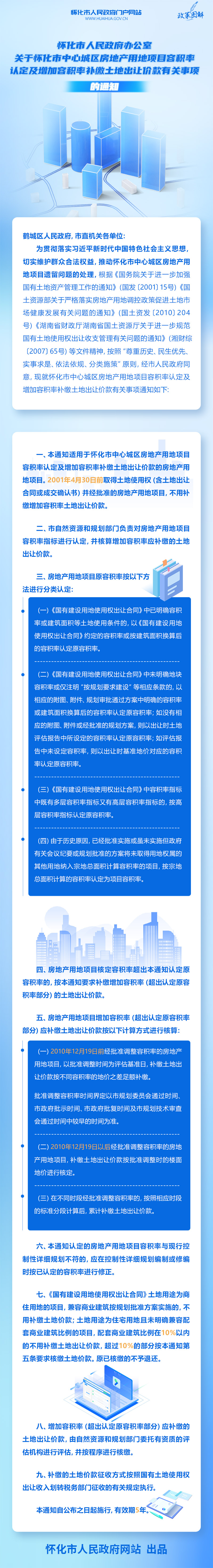 • 懷化市自然資源和規(guī)劃局解讀《懷化市中心城區(qū)房地產(chǎn)用地項(xiàng)目容積率認(rèn)定及增加容積率補(bǔ)繳土地出讓價(jià)款有關(guān)事項(xiàng)的通知》