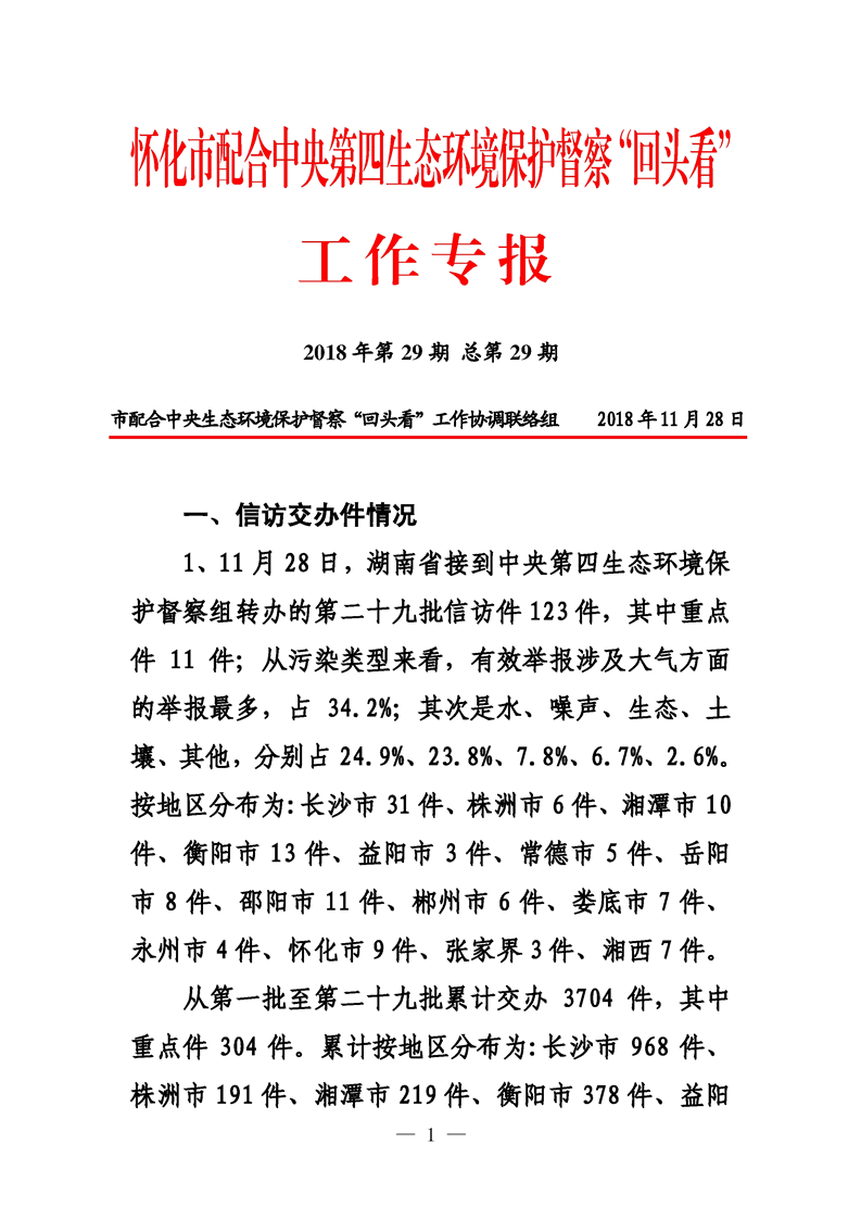 第二十九期 懷化市配合中央生態(tài)環(huán)境督察回頭看工作專報(bào)