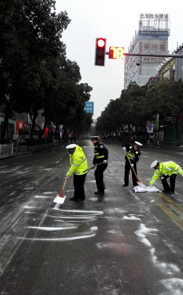 一、農(nóng)村: G209國(guó)道全線結(jié)冰,于1月26日晚18時(shí)對(duì)客運(yùn)車輛及7座以上車輛禁止通行,7座以下車輛必須安裝防滑鏈才能通行。因道路結(jié)冰,單方一般事故多發(fā),民警迅速出警,及時(shí)處置,并妥善安置事故當(dāng)事人;黃金坳座巖上坡因冰雪路滑,滯留車輛較多,民警協(xié)助駕駛?cè)税惭b防滑鏈,撒鹽除雪,幫助群眾。