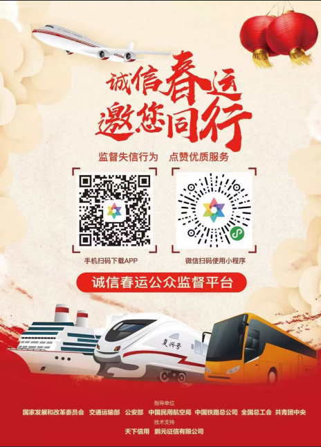 從2017年開始,國家發(fā)展改革委會同公安部、交通運輸部、民航局、鐵路總公司等部門和單位建立了“誠信春運公眾監(jiān)督平臺”,鼓勵旅客隨時隨地監(jiān)督春運中的失信和不文明行為,點贊優(yōu)質服務和好人好事,取得積極成效。