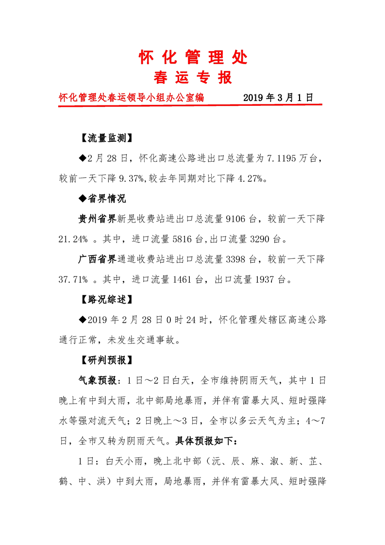 2019年懷化市高速公路春運(yùn)專報(bào)(第38期)