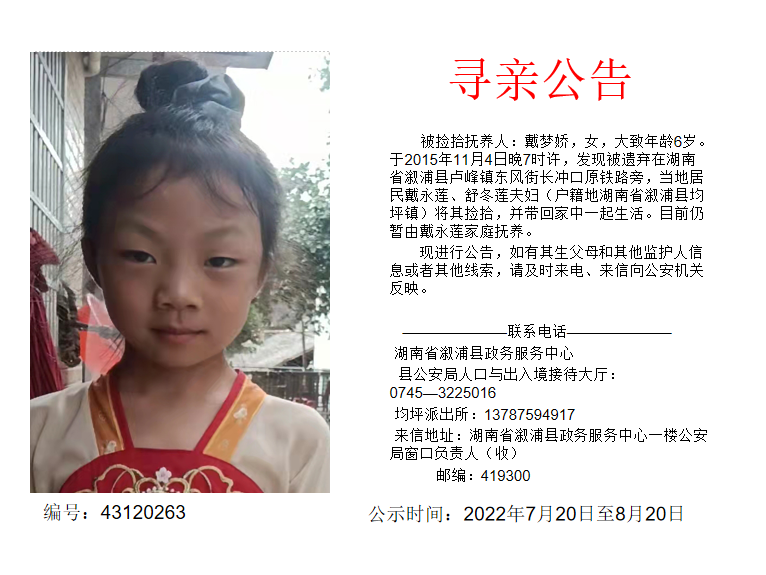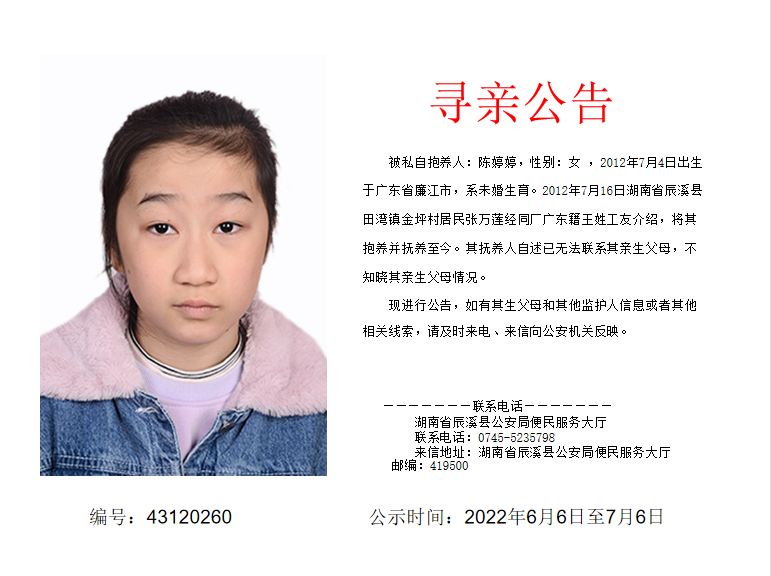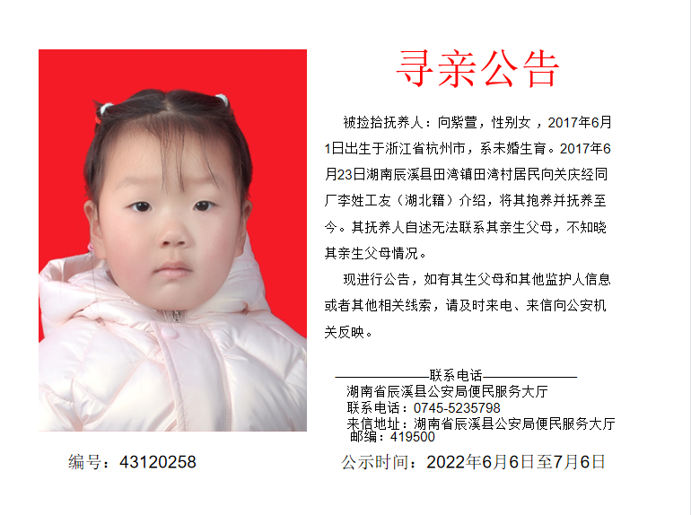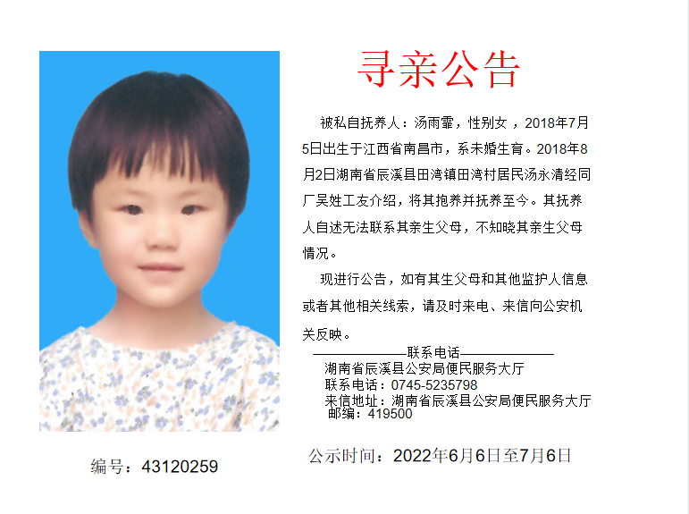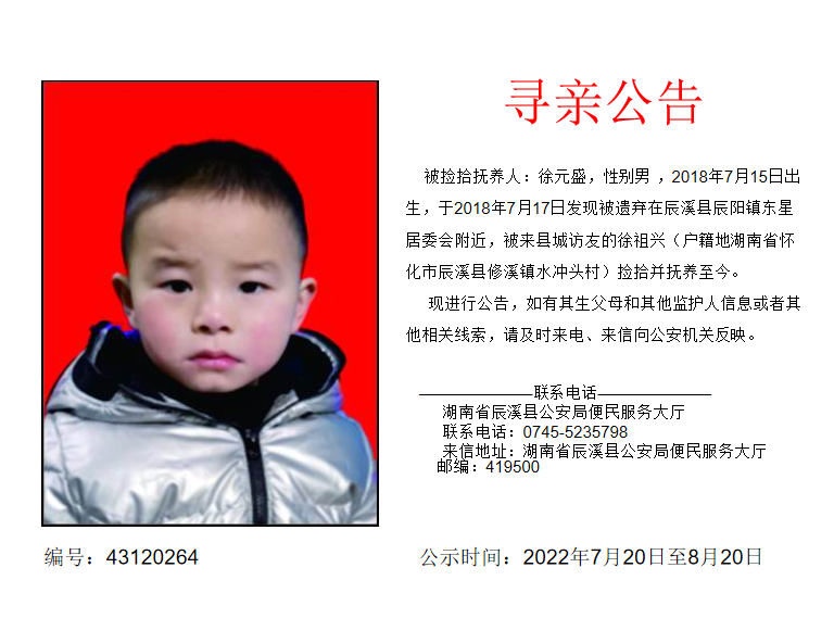 首頁 > 信息公開 > 專題專欄 > 尋親公告