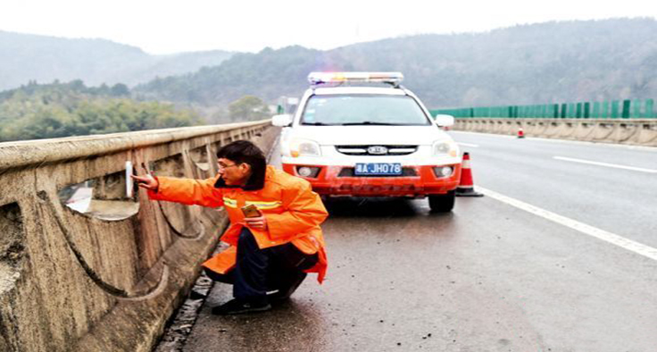 12月29日,高速公路懷化管理處養(yǎng)護人員在G65舞水大橋查看橋梁溫度,確保車輛安全通行。(本報記者 潘雨 通訊員 曹莉 攝)