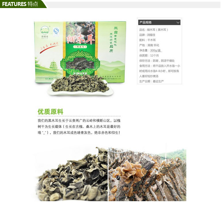 品牌:潤(rùn)福佳 包裝方式: 袋裝 凈重:300g 保質(zhì)期:365天 生產(chǎn)許可證:QS431216010545 產(chǎn)品標(biāo)準(zhǔn)號(hào):GB/T6192-2008 配料表:細(xì)木耳 食品添加劑: 無 儲(chǔ)藏方法: 防潮、陰涼干燥處 產(chǎn)地: 湖南省 懷化市通道 |