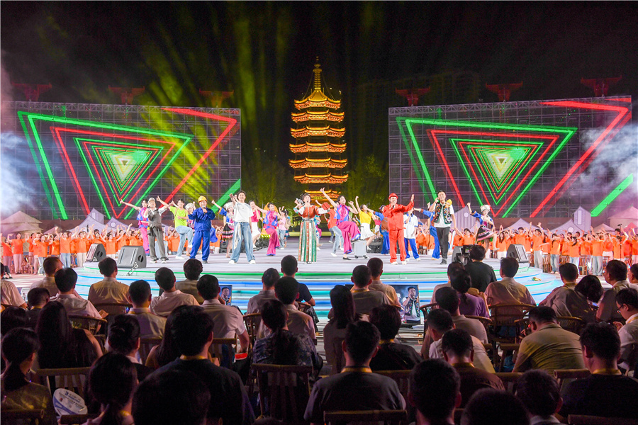 (9月17日晚,“樂(lè)動(dòng)五溪 歌行千年”村歌聯(lián)唱在鶴城區(qū)鶴鳴洲舉行。)