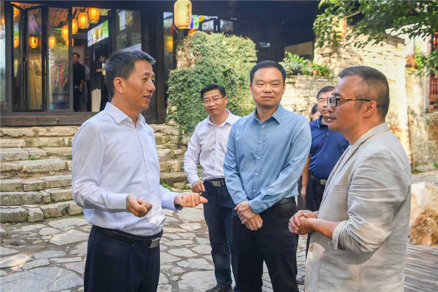 (9月28日上午,市委書記許忠建專題調(diào)研國慶、中秋假期旅游市場服務(wù)保障準(zhǔn)備工作。圖為許忠建在荊坪古村與經(jīng)營業(yè)主交流,聽取意見建議。懷化日報(bào)全媒體記者 楊智偉 攝)