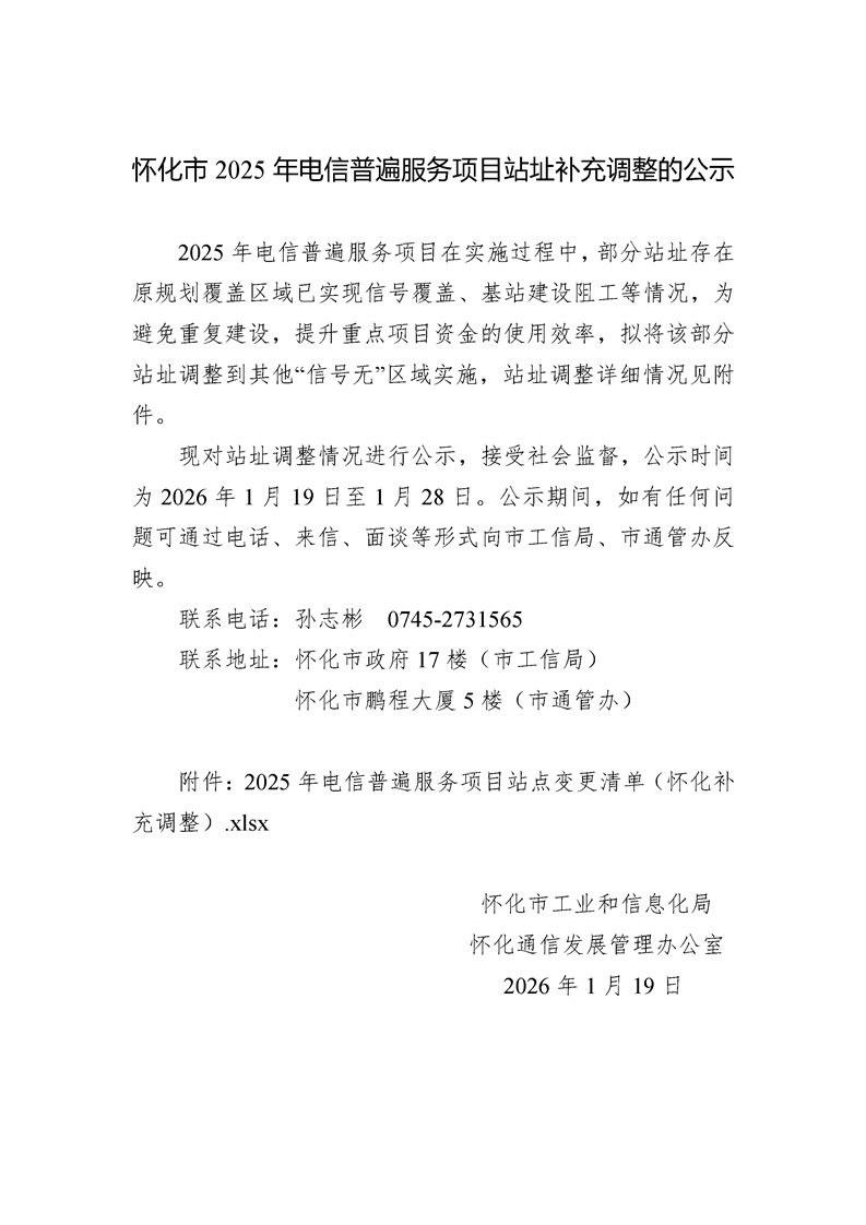 懷化市2025年電信普遍服務(wù)項(xiàng)目站址補(bǔ)充調(diào)整的公示