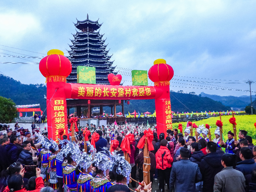 2月26日,通道侗族自治縣雙江鎮(zhèn)長安堡村舉行油菜花節(jié),吸引了眾多游客和市民前來觀景、游玩。