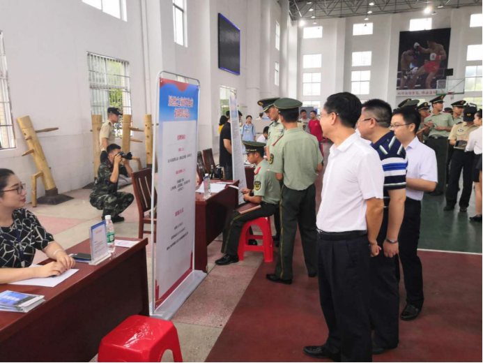 2019年8月29日,懷化市退役軍人事務(wù)局、懷化市人力資源和社會保障局、懷化軍分區(qū)政治工作處聯(lián)合舉辦“送政策、送服務(wù)、送就業(yè)職業(yè)崗位”進軍營專場招聘會。