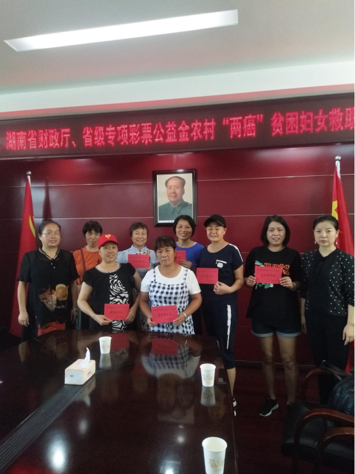 2019年上半年,懷化市共爭取到省級專項彩票公益金、農(nóng)村“兩癌”貧困婦女救助金32.4萬元,救助全市27名兩癌貧困患者,旨在幫助不幸患病的貧困婦女們能充分發(fā)揚(yáng)“自尊、自信、自立、自強(qiáng)”精神,積極樂觀面對生活,堅強(qiáng)勇敢對抗病魔,把黨和政府的關(guān)愛化作戰(zhàn)勝疾病的力量,用頑強(qiáng)的意志創(chuàng)造美好燦爛的明天。(圖為8月28日,洪江市“兩癌”貧困婦女救助金發(fā)放現(xiàn)場)