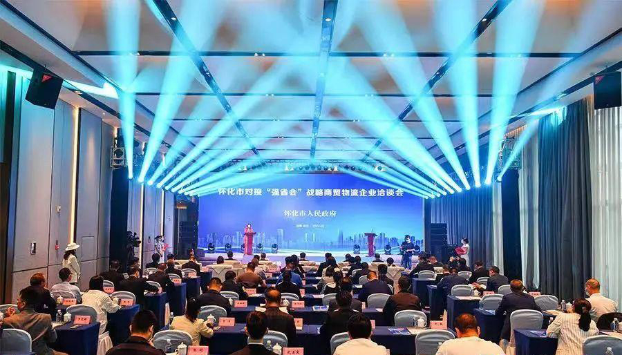 (5月13日下午,懷化市對接“強省會”戰(zhàn)略商貿(mào)物流企業(yè)洽談會在長沙舉行,對懷化國際陸港進(jìn)行推介。圖源:懷化新聞網(wǎng))