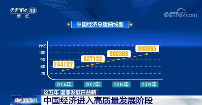 這是“十三五”時期,從2016年到2019年的中國經(jīng)濟總量曲線圖,四年來,中國經(jīng)濟總量一年上一個大臺階,年均經(jīng)濟增長率達到6.7%,高于世界經(jīng)濟平均水平3.9個百分點。