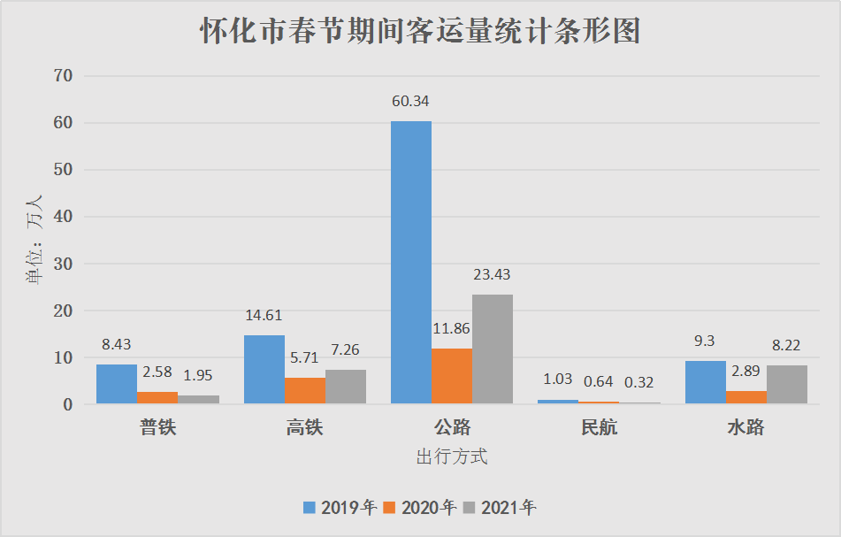 春節(jié)假期期間,懷化市綜合交通發(fā)送旅客41.18萬人,同比2020年上升74.02%,同比2019年下降61.1%。其中普鐵1.95萬人,同比2020年下降24.31%,同比2019年下降76.86%;高鐵7.26萬人,同比2020年上升27.22%,同比2019年下降50.32%;公路23.43萬人,同比2020年上升102.16%,同比2019年下降61.17%;水路8.22萬人,同比2020年上升184.92%,同比2019年下降11.62%;芷江機(jī)場3165人,同比2020年下降50.07%,同比2019年下降69.41%。受疫情影響,今年春節(jié)期間群眾出行旅游大幅減少,大部分市民選擇在懷就地過年,高速公路偶有堵塞現(xiàn)象,公路、水路客流量有所回暖,但未達(dá)到正常水平,部分普鐵線路停運(yùn),往年最熱鬧的高鐵客流量也有所減少。全市春運(yùn)總體平穩(wěn)、安全、有序。(市春運(yùn)辦 劉二華)