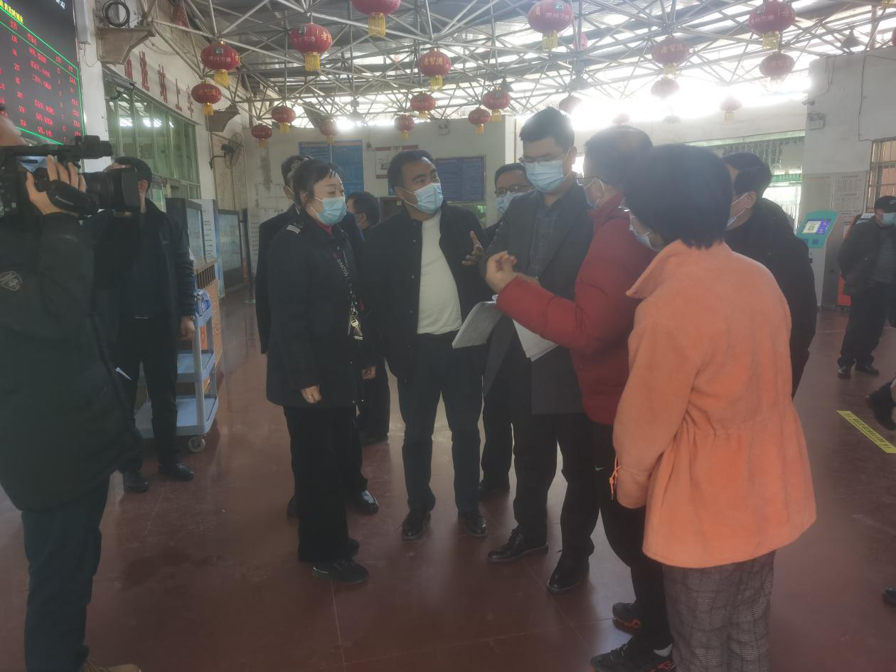檢查組一行在懷化客運(yùn)東站,詢問了春運(yùn)首日客流情況,詳細(xì)了解了運(yùn)力服務(wù)保障、疫情防控等工作,實地查看了核酸檢測、掃碼登記、體溫監(jiān)測等情況。隨后來到懷化高速北站檢查了懷化高速北出口的疫情防控工作。