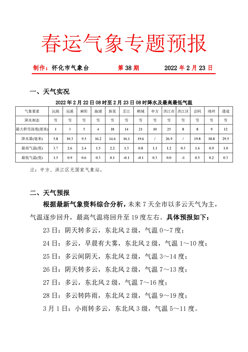 春運(yùn)氣象專題預(yù)報 第38期