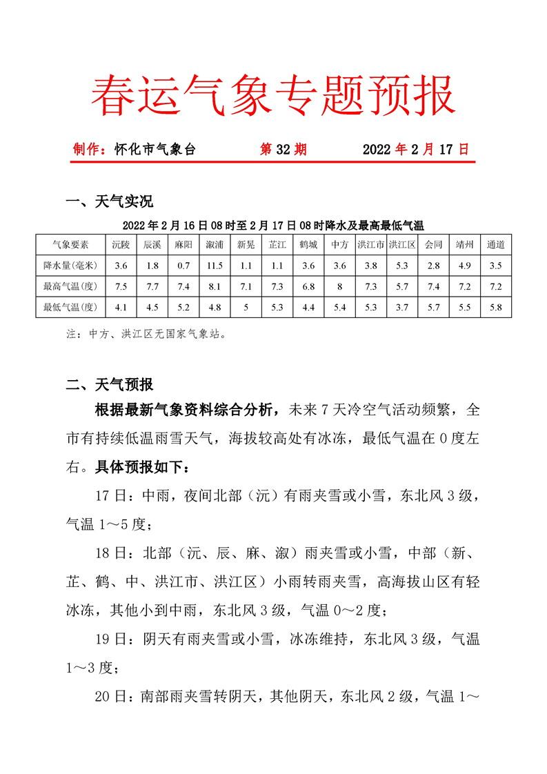 春運(yùn)氣象專題預(yù)報(bào) 第32期