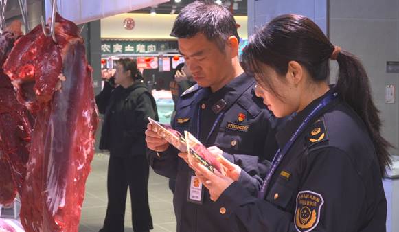 在主城區(qū)大型超市,執(zhí)法人員聚焦春節(jié)消費熱門品類,選取不同品牌預包裝食品,仔細查看生產(chǎn)日期、有效期、執(zhí)行標準、配料表等信息,嚴防“三無”食品、過期食品流入市場;同時,依托農(nóng)產(chǎn)品質(zhì)量安全可追溯系統(tǒng),掃碼查驗牛肉、豬肉等畜禽肉承諾達標合格證、檢疫檢驗證等情況。檢查過程中,執(zhí)法人員現(xiàn)場督促超市經(jīng)營者嚴格落實食品安全主體責任,嚴把進貨查驗關,定期自查并及時清理臨期、不合格食品,切實從源頭防范食品安全風險。