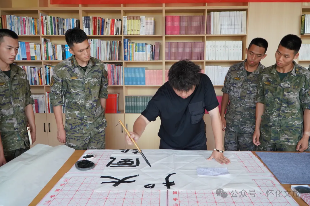 活動現(xiàn)場,懷化市圖書館邀請湖南省青年書法家協(xié)會理事、懷化市書法家協(xié)會副秘書長張鵬進行授課和交流,在介紹書法的基本知識后,張鵬帶領現(xiàn)場官兵們鑒賞書法作品,并與大家一起進行書法創(chuàng)作,提升大家的文藝創(chuàng)作能力。