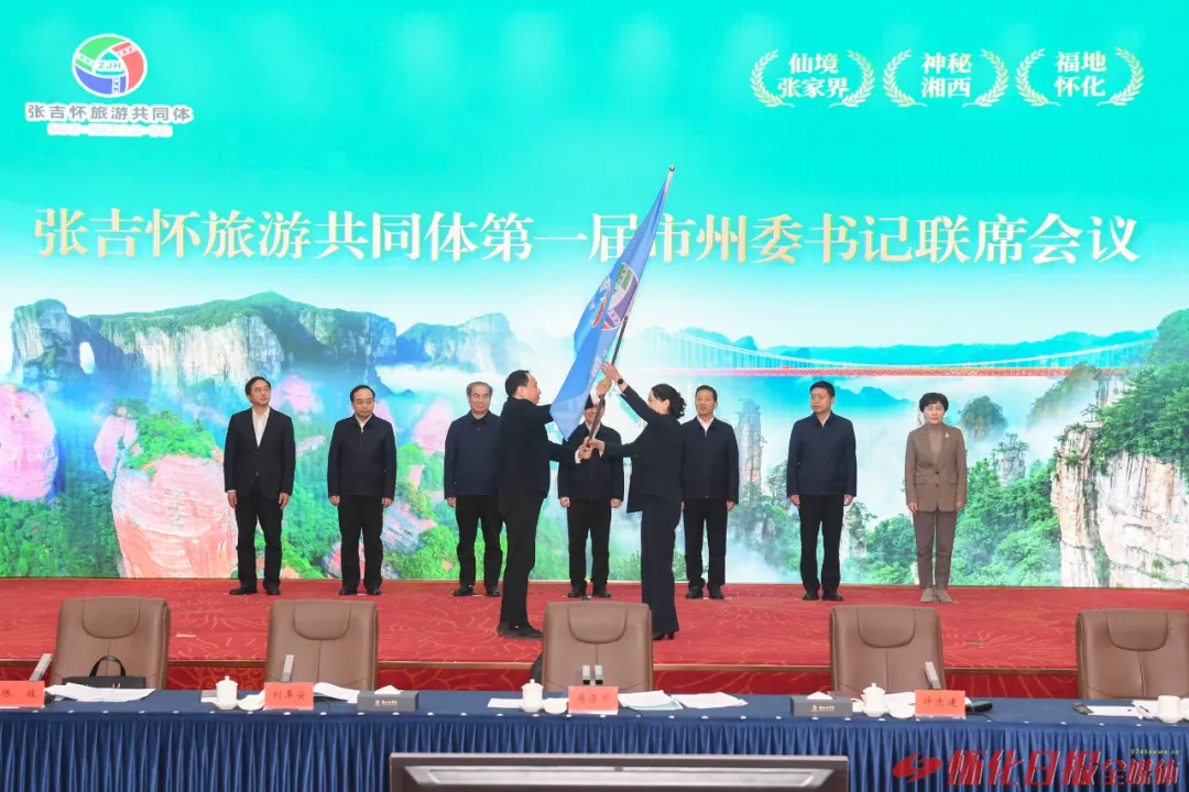 現(xiàn)場,懷化市接過張吉懷旅游共同體會旗,成為新一屆輪值主席單位,未來將以張家界、湘西自治州、懷化的順序每年輪值。