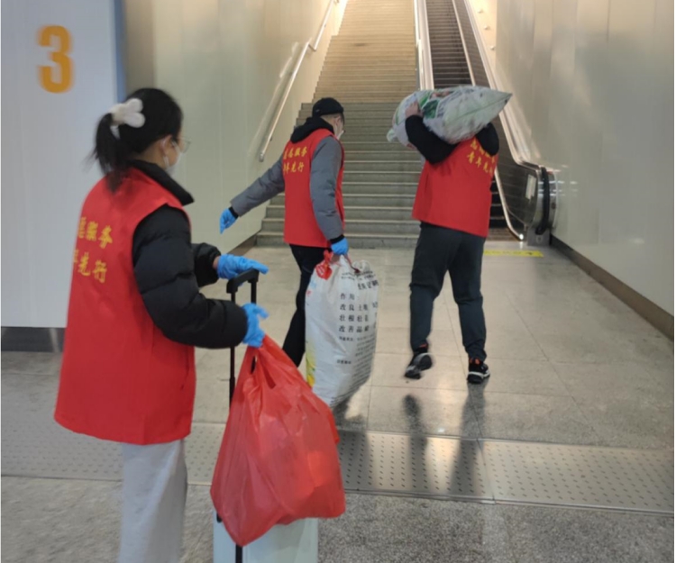 青年志愿者經(jīng)過培訓(xùn),穿上馬甲,奔赴服務(wù)崗位。青年志愿者們合理分工,有的在進(jìn)站口提醒旅客提前準(zhǔn)備好身份證,有的在安檢口協(xié)助行李過檢,有的在咨詢臺(tái)熱心答疑,對(duì)于老弱病殘等特殊群體,志愿者們還會(huì)進(jìn)行送站服務(wù)。青年志愿者們不畏嚴(yán)寒,堅(jiān)守崗位,積極熱情地開展春運(yùn)服務(wù)工作,紅色的身影不停穿梭在旅客中間,以自身的行動(dòng)溫暖旅客的回家路!