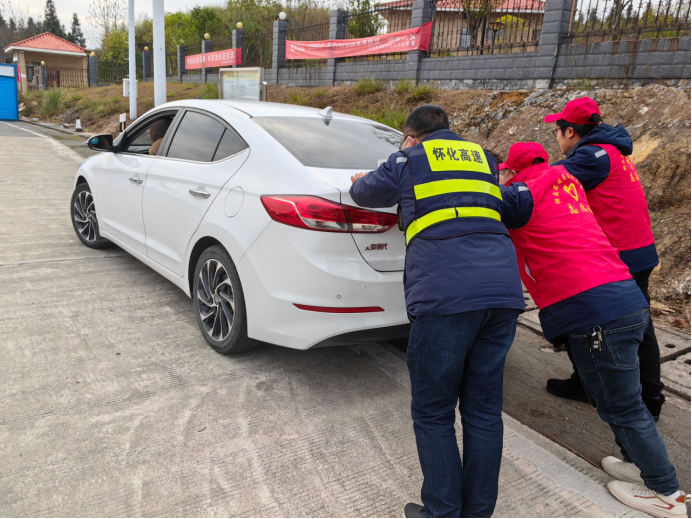 大年初二,在江市收費(fèi)站,一輛小轎車因燃油耗盡,無(wú)法啟動(dòng)。由于身處異地司機(jī)臉上寫滿了焦慮與不安。收費(fèi)站工作人員發(fā)現(xiàn)司機(jī)的難處后, 合力把車推至收費(fèi)廣場(chǎng)安全區(qū)域。隨后帶駕駛員到附近加油站購(gòu)買汽油,并幫助司機(jī)加上汽油,重新踏上旅途。