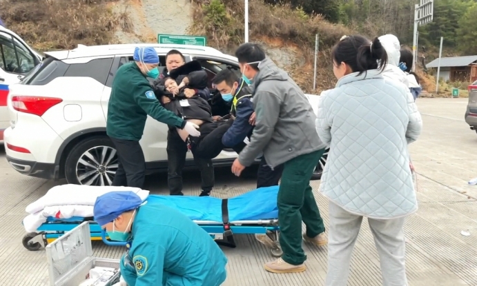 大年初一上午,一輛粵B越野車通過萬(wàn)佛山收費(fèi)站時(shí),駕駛員向收費(fèi)站工作人員尋求幫助。原來(lái),車上一位老人突發(fā)疾病,面色蒼白,表情痛苦,無(wú)法正常交流。收費(fèi)班長(zhǎng)了解情況后,立馬撥打120,同時(shí)將車輛引導(dǎo)到安全區(qū)域。十幾分鐘后,醫(yī)護(hù)人員趕到現(xiàn)場(chǎng),收費(fèi)班長(zhǎng)協(xié)助醫(yī)護(hù)人員將暈厥老人抬上救護(hù)車送往醫(yī)院接受治療。