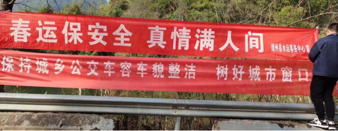 1月10日,靖州縣水運事務中心在多個鄉(xiāng)鎮(zhèn)懸掛水運安全宣傳標語