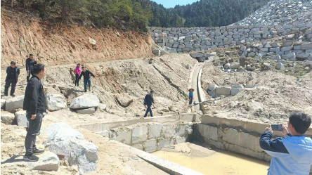 當(dāng)天,牽頭單位洪江市自然資源局組織市水利局、懷化市生態(tài)環(huán)境局洪江市分局、洪江市農(nóng)業(yè)農(nóng)村局、洪江市灣溪鄉(xiāng)人民政府,到舉報(bào)點(diǎn)灣溪鄉(xiāng)云峰村涉事礦業(yè)公司現(xiàn)場(chǎng)進(jìn)行核實(shí)。經(jīng)過(guò)現(xiàn)場(chǎng)觀測(cè)勘查和相關(guān)證照及批文收集,確認(rèn)礦山自2021年12月30日采礦許可證到期后一直停采,該區(qū)域臨時(shí)用地手續(xù)、環(huán)評(píng)手續(xù)齊全,沒有占用耕地的情況。場(chǎng)內(nèi)廢水經(jīng)收集沉淀處理后全部循環(huán)使用,修建有一座雨水收集池和應(yīng)急處理池等循環(huán)設(shè)備用以實(shí)現(xiàn)雨污分離。工作人員和當(dāng)?shù)厝罕娨黄鸬匠恋沓?、雨水出水口及附近農(nóng)田實(shí)地查驗(yàn),發(fā)現(xiàn)沉淀池出水較清澈,無(wú)泥沙,附近農(nóng)田和雨水出水口水流清澈,沒有泥沙流入農(nóng)田,但在棄土場(chǎng)底部附近有約十多平方米旱土被少量的泥沙掩蓋。當(dāng)即對(duì)企業(yè)負(fù)責(zé)人提出整改要求,目前涉事企業(yè)組織人員按照方案已完成對(duì)棄土場(chǎng)底部附近旱土泥沙的全面清理,共清理泥沙約2m3,疏通水渠約5米,安裝了水閥1個(gè)。