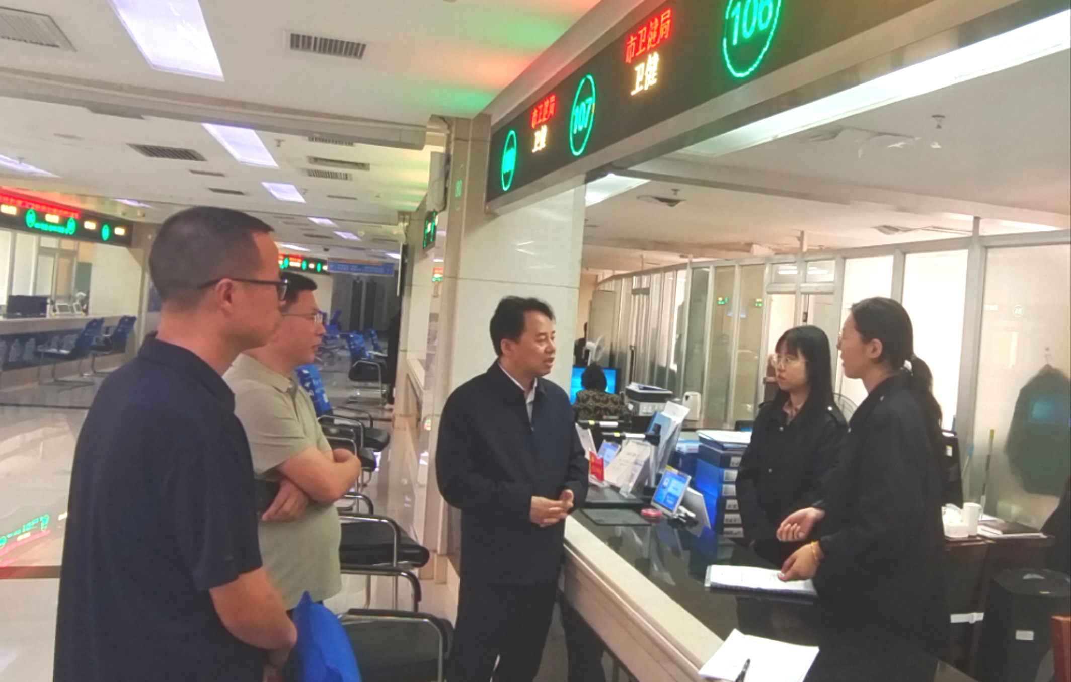 針對前不久市衛(wèi)健委辦事窗口在辦理某化妝品店公場所衛(wèi)生許可存在業(yè)務超時問題,結合近期窗口高頻辦理事項和群眾反映較多的復雜事項,5月29日上午,市衛(wèi)健委黨委書記、主任譚力銘,以“四不兩直”方式,來到衛(wèi)健辦事大廳窗口,以普通群眾身份,通過線下取號申請辦理公共衛(wèi)生許可業(yè)務,全程體驗“咨詢→填表→提交材料→等待審核等”辦事流程,并現(xiàn)場體驗工作人員的服務態(tài)度。