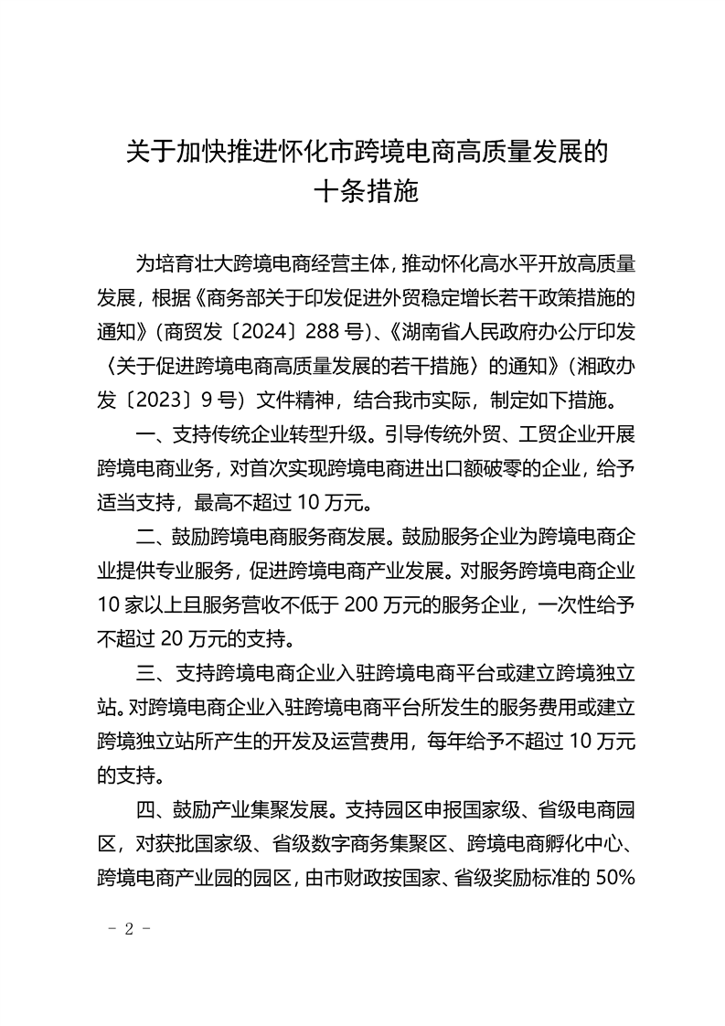 關(guān)于印發(fā)《關(guān)于加快推進懷化市跨境電商高質(zhì)量發(fā)展的十條措施》的通知