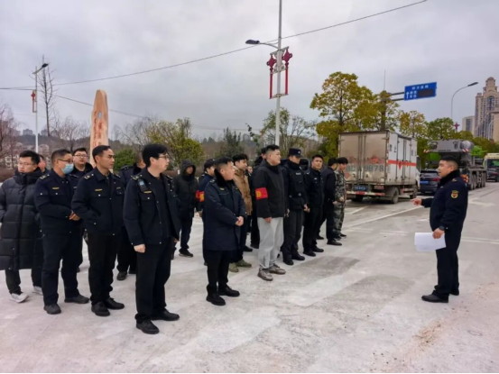 2月16日,溆浦縣除夕夜參與煙花爆竹禁燃巡邏管控的工作人員整裝集合。