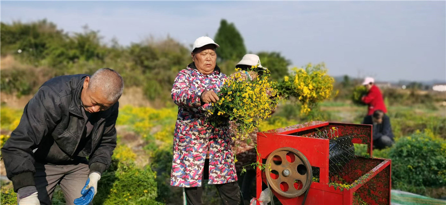 初冬時(shí)節(jié),野菊金黃。11月14日,沅陵縣太常便民服務(wù)中心白羊坪村野菊花田里一片繁忙,太安社區(qū)易地扶貧搬遷戶、殘疾人張丁福正帶領(lǐng)十多名村民忙著采收野菊花?;ㄌ锢铮蠹倚τ缁?,臉上...